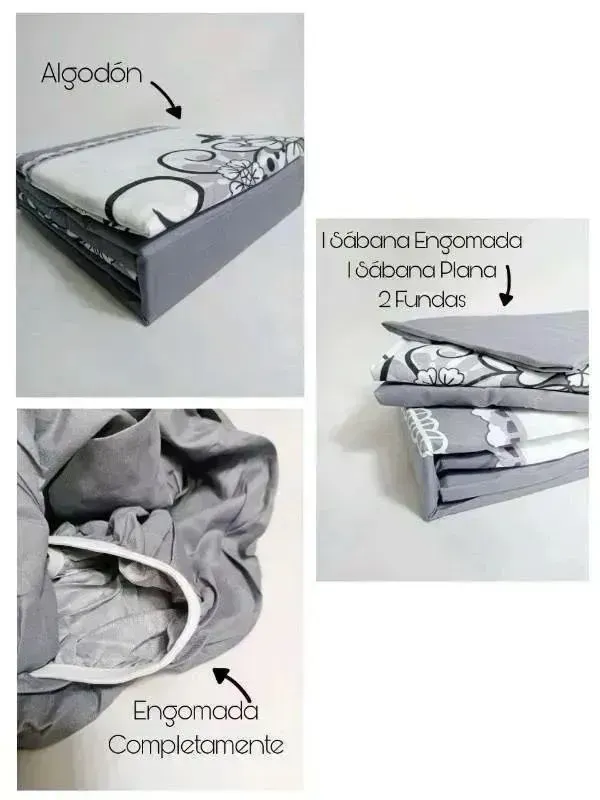 Contiene 4 Piezas, Sábana Plana (274x249cm), Sábana Ajustable (198x203+28cm) 2 Fundas (51x102cm), Completamente Engomada, Textura Algodón.